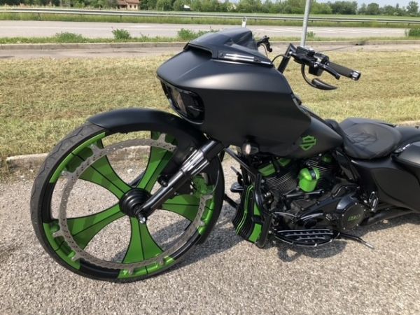 primi classificati categoria bagger MBE 2019 e best paint !prima moto al mondo con telaio modulare elettro idraulico e cerchio anteriore in magnesio! FOR SALE